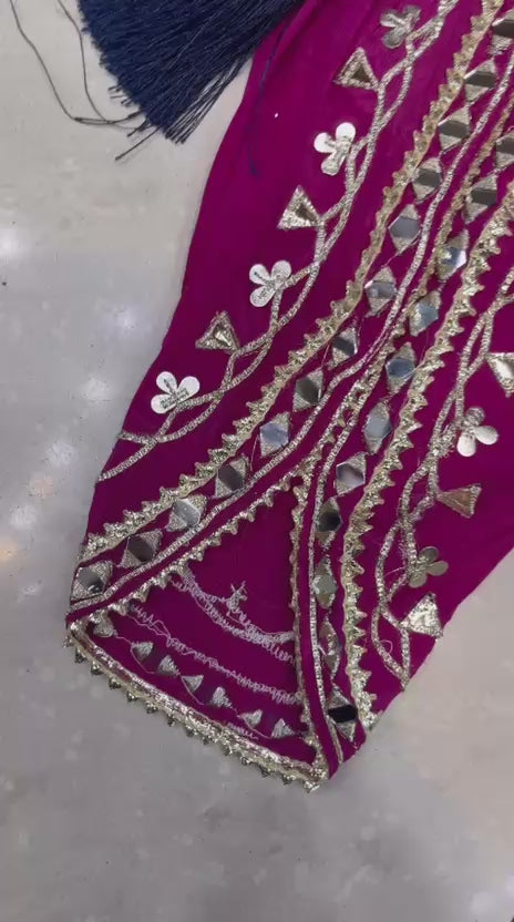Beautiful Dhoti pant on pure chinnon with leather embroidery.