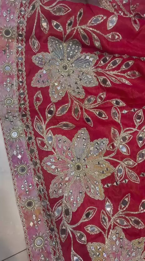 . Gorgeous Organza silk same color Dupatta of mirror and dori work adding Grace and Beauty.