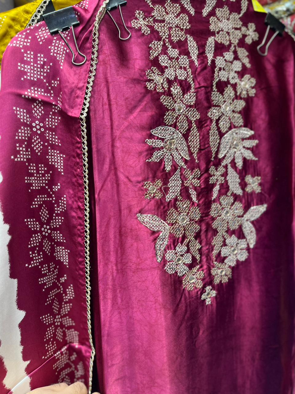 The suit comes with a big-size gajji silk dupatta in the same vibrant print, adding balance and richness to the overall look.