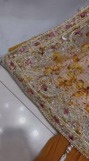Deep u neck border with self sequins beautiful ghera , gotta patti work