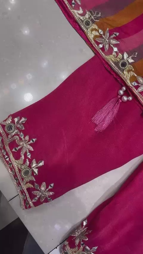 Heavy Gotta patti and hand mirror embroidery with leather buti