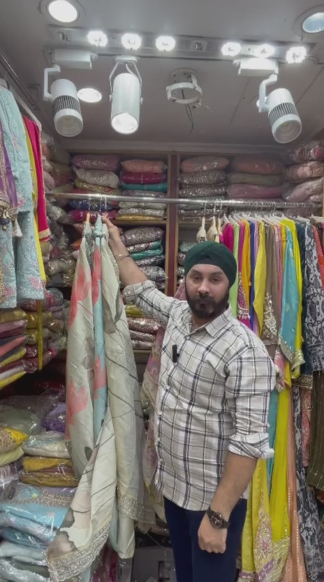 The Dupatta comes with a same color muslin with beautiful Flower floral printing along Organza patch work with zari sequins and hand detailing nalki border same as shirt.