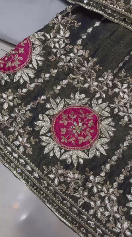 . Gorgeous shimmer silk heavy gotta patti and mirror work four side border gracing the beauty of Aanarkali.