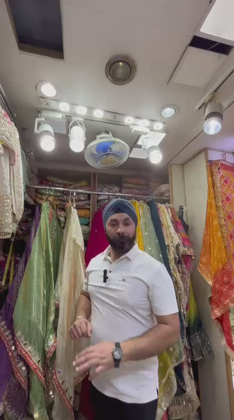 Elegant different styles original mirror work V neckline , panel and heavy ghera with exclusive gotta patti work and zari highlights.