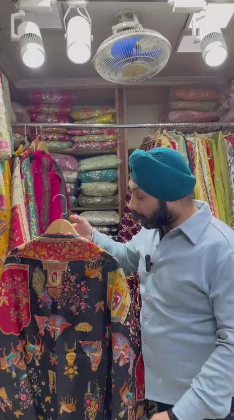 This premium suit is crafted in silk jacquard, where every motif is woven inside the fabric—not printed. That’s what gives jacquard its luxurious depth. After the weaving is complete, the remaining spaces are enhanced using position printing, so the artwork sits exactly where it should. The result is a rich, artistic look that matches the feel of far more expensive jacquard suits, without the heavy price tag.