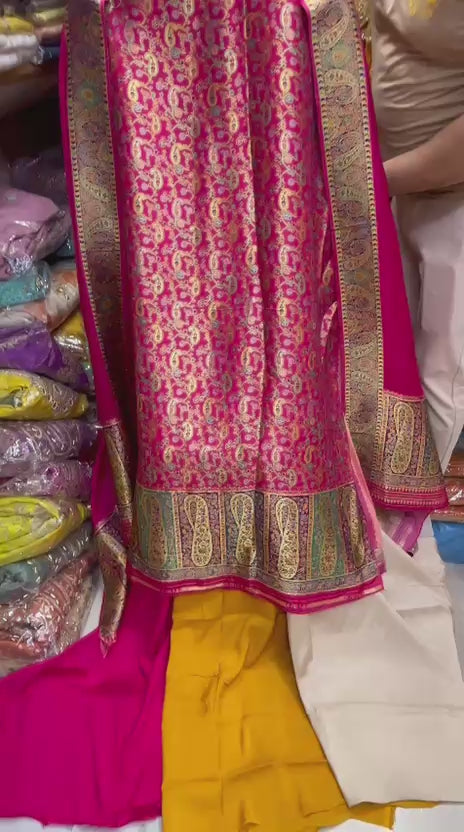 The set is completed with a large-sized silk jacquard dupatta, showcasing the same. authentic woven texture.