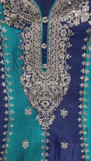 . Intricately Embroidered Neckline , sleeves cuffs ,front back and Tulip with zari and Dori Work