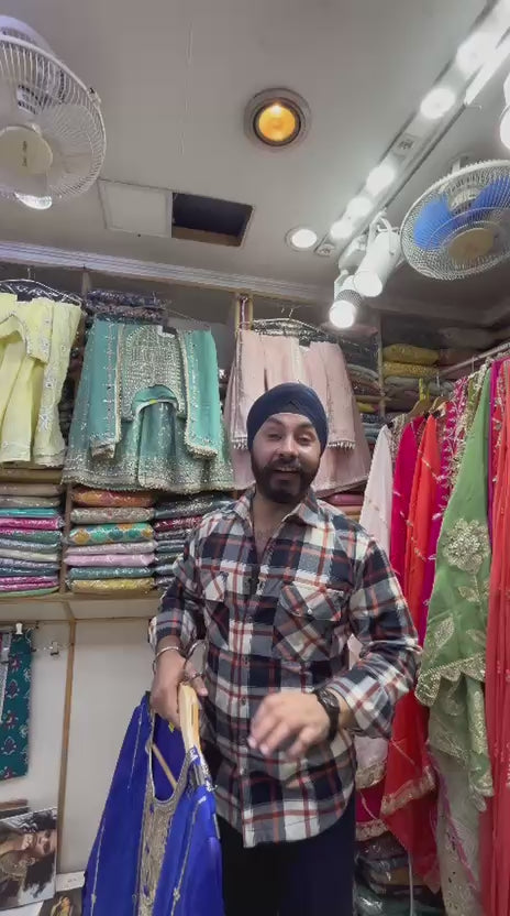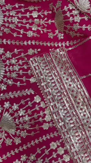 A Ethnic and Traditional Beautiful Vibrant Color unstitched Sharara suit set Crafted in Pure and soft chinnon with exquisite embroidery and festive flair!